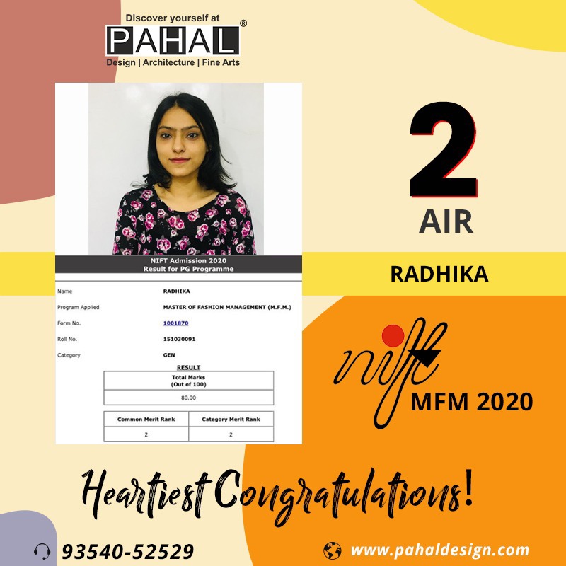 Pahal Design NIFT (MFM/M.Des/M.Ftech) Results