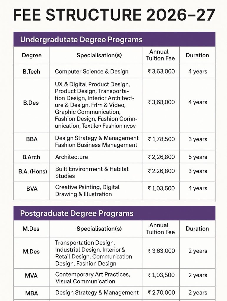 World University of Design (WUD), Haryana, is India’s premier institution dedicated entirely to creative education, ranked A+ (Diamond Band) by QS I-GAUGE for academic excellence. Spread over 12 acres with specialized labs, hostels, and world-class studios, WUD offers 30+ programs across Design, Architecture, Fashion, Communication, Visual Arts, Performing Arts, and Business. The faculty includes alumni from NID, NIFT, IIT, and top global institutions.